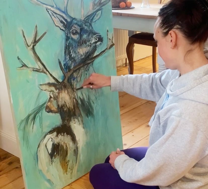Sie kombiniert zarte, transparente Farbschichten mit lebendigen Skizzen und strukturreichen Flächen. Ihre Werke sind oft von der Natur inspiriert – Wälder, Tiere, Licht und Bewegung werden in abstrakter, zugleich gefühlvoller Form dargestellt.